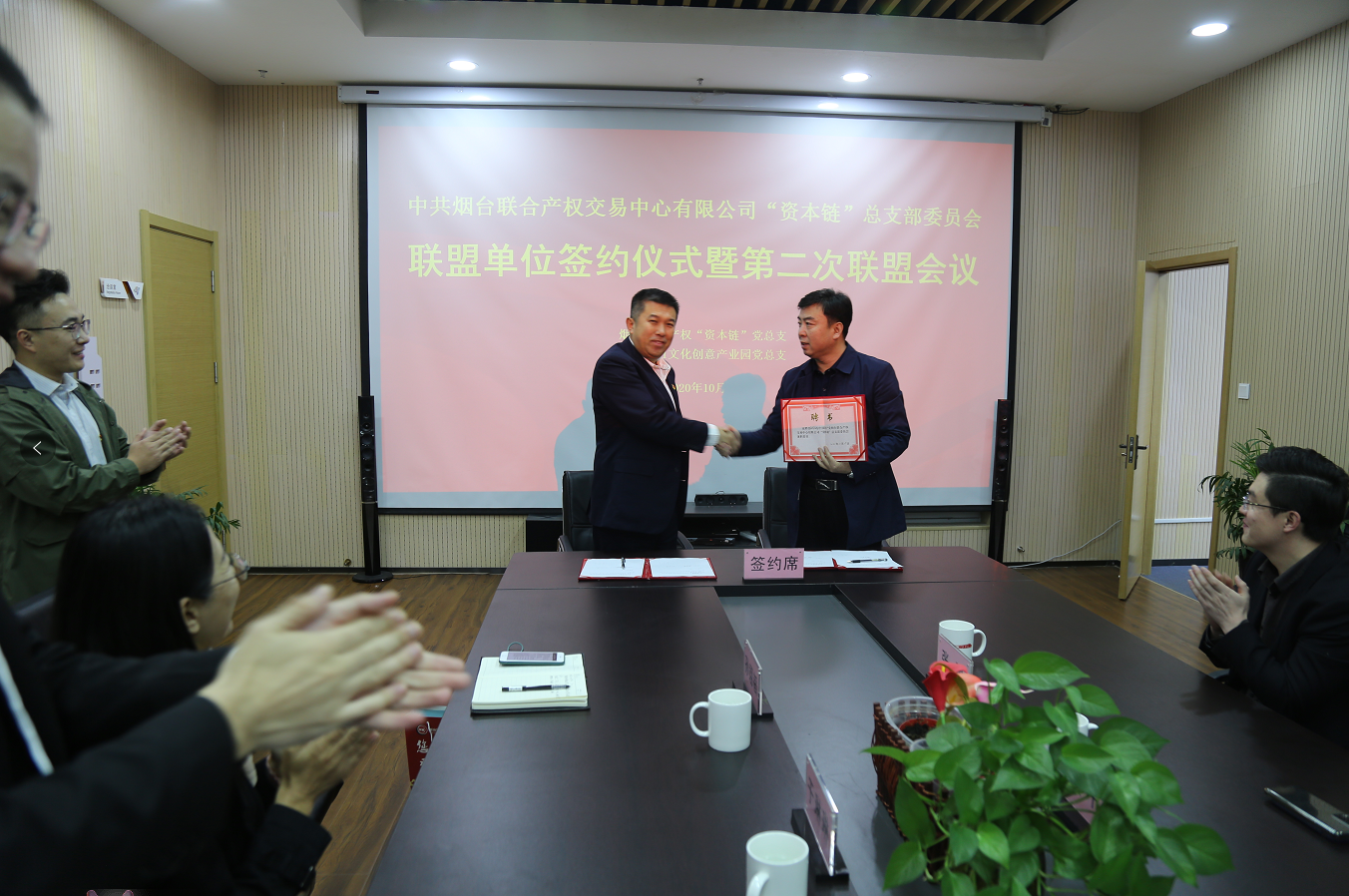 “黨是最好的信仰,建是最大的優(yōu)勢(shì)”,懸掛著的各具特色的黨建標(biāo)語,成為了煙臺(tái)1861文化創(chuàng)意產(chǎn)業(yè)園黨建文化的最好詮釋。2020年10月29日,迎著晨曦踏著朝陽,聯(lián)合產(chǎn)權(quán)“資本鏈黨總支”會(huì)同聯(lián)盟單位煙臺(tái)萊山建行黨總支共同來到1861產(chǎn)業(yè)園召開聯(lián)盟單位簽約儀式暨第二次聯(lián)盟會(huì)議。簽約儀式上,聯(lián)合產(chǎn)權(quán)黨支部書記初志杰代表“資本鏈黨總支”同1861文化創(chuàng)意產(chǎn)業(yè)園黨總支簽訂聯(lián)盟協(xié)議,并為園區(qū)黨總支書記張儉凱同志頒發(fā)了兼職委員聘書。