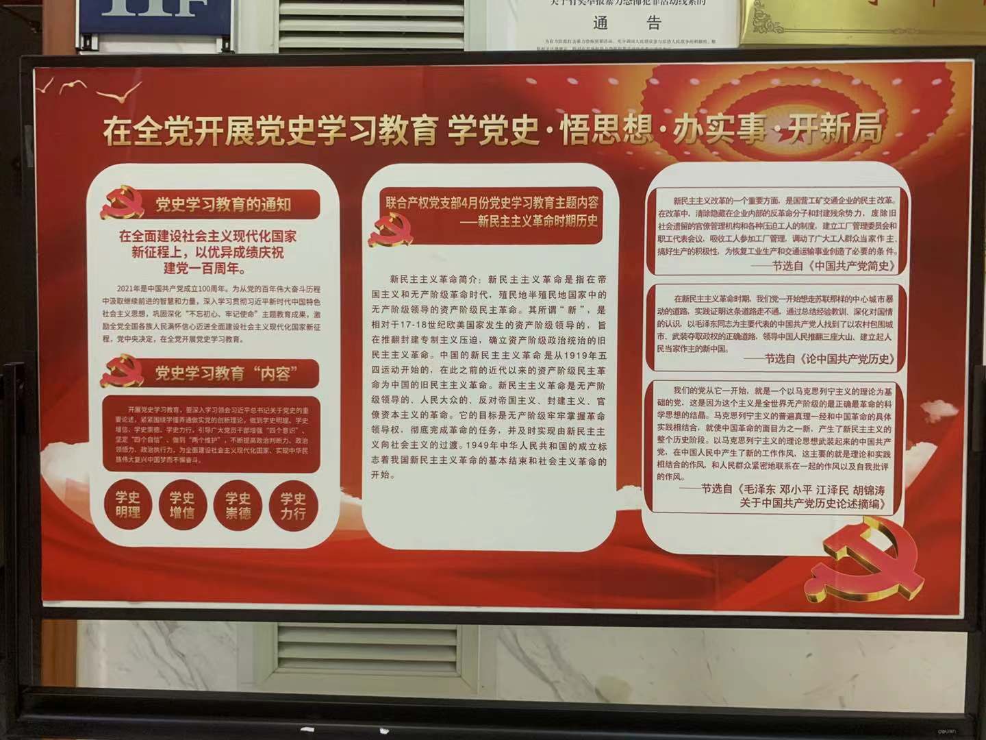 自黨史學(xué)習(xí)教育開(kāi)展以來(lái),聯(lián)合產(chǎn)權(quán)黨支部通過(guò)制定學(xué)習(xí)計(jì)劃、制作月度學(xué)習(xí)宣傳欄、組織黨員定期學(xué)習(xí)討論等方式持續(xù)推進(jìn)學(xué)習(xí)教育工作。下一步,聯(lián)合產(chǎn)權(quán)黨支部將繼續(xù)深入開(kāi)展黨史學(xué)習(xí)教育主題活動(dòng),切實(shí)把黨史學(xué)習(xí)教育與總結(jié)經(jīng)驗(yàn)、觀照現(xiàn)實(shí)、推動(dòng)工作結(jié)合起來(lái),切實(shí)做到學(xué)黨史、悟思想、辦實(shí)事、開(kāi)新局,鍛造“不折不扣、不偏不倚”的政治執(zhí)行力,以優(yōu)異成績(jī)迎接建黨一百周年。