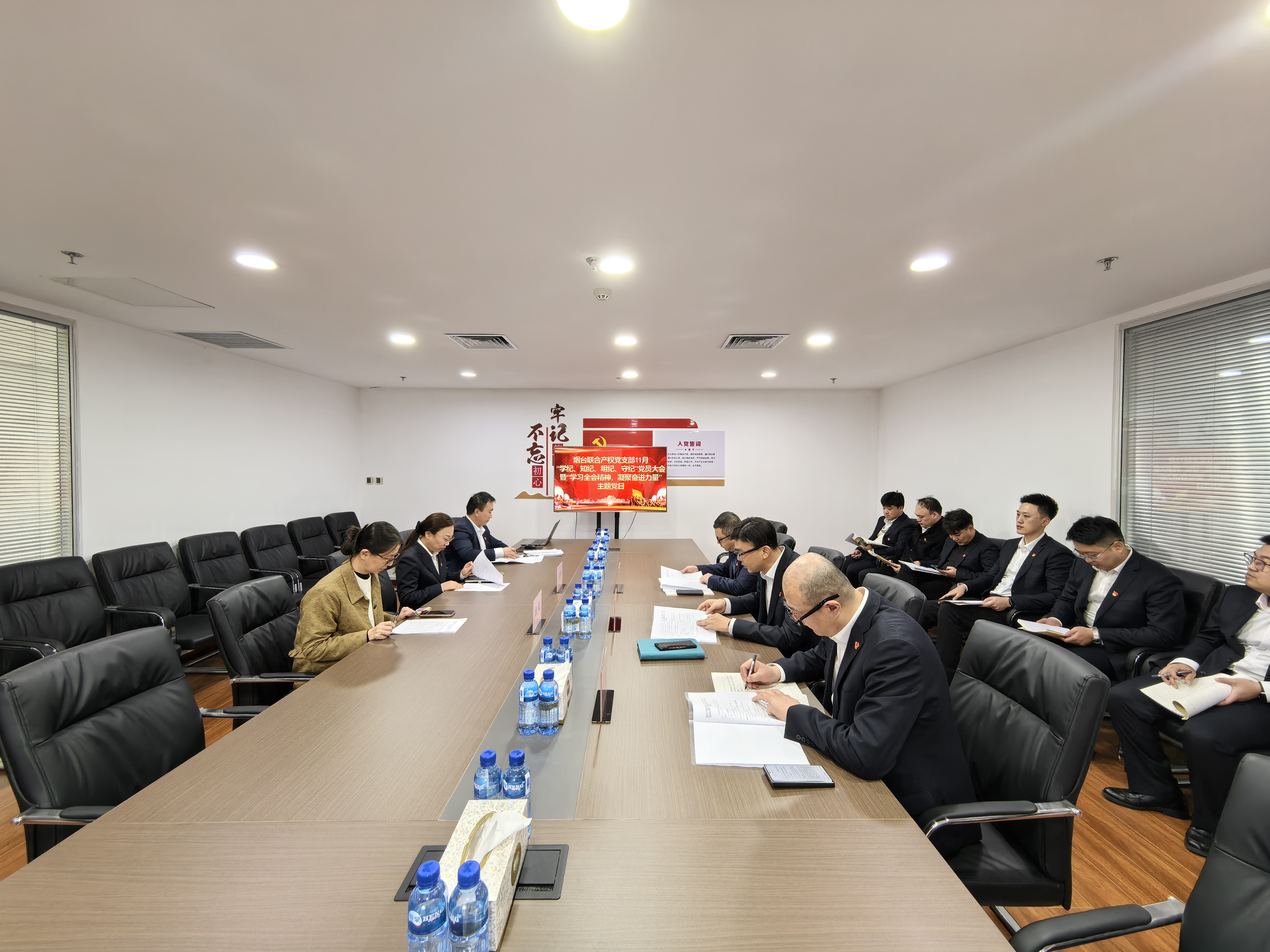 為深入學(xué)習(xí)貫徹黨的二十屆四中全會精神,全面落實集團黨委關(guān)于全面從嚴(yán)治黨的部署要求,進一步強化黨員干部紀(jì)律意識、責(zé)任意識和使命擔(dān)當(dāng),聯(lián)合產(chǎn)權(quán)黨支部召開11月“學(xué)紀(jì)、知紀(jì)、明紀(jì)、守紀(jì)”黨員大會暨“學(xué)習(xí)全會精神,凝聚奮進力量”主題黨日活動。全體黨員參加會議,國資公司、投控集團黨群部相關(guān)負(fù)責(zé)同志到會巡聽指導(dǎo),會議嚴(yán)格按照既定議程有序推進,取得了圓滿成效。?