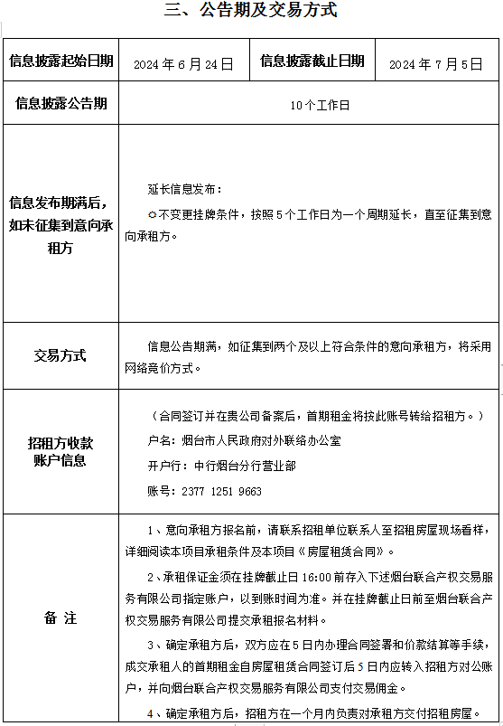 掛牌起止日期:2024年06月24日至2024年07月05日
