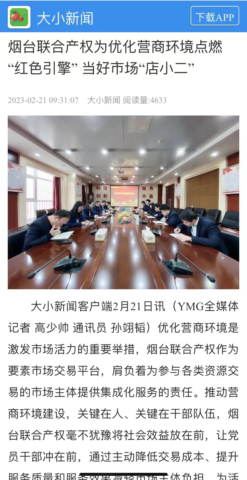 近日,“學習強國”煙臺平臺、煙臺日報社大小新聞網(wǎng)、大眾網(wǎng)煙臺刊發(fā)署名文章《煙臺聯(lián)合產(chǎn)權(quán)為優(yōu)化營商環(huán)境點燃“紅色引擎”當好市場“店小二”》,全面介紹了2022年煙臺聯(lián)合產(chǎn)權(quán)作為要素市場交易平臺,肩負著為參與各類資源交易的市場主體提供集成化服務的責任,在推動營商環(huán)境建設方面,毫不猶豫將社會效益放在前,讓黨員干部沖在前,通過主動降低交易成本、提升服務質(zhì)量和服務效果減輕市場主體負擔、為活躍要素市場點燃“紅色引擎”。